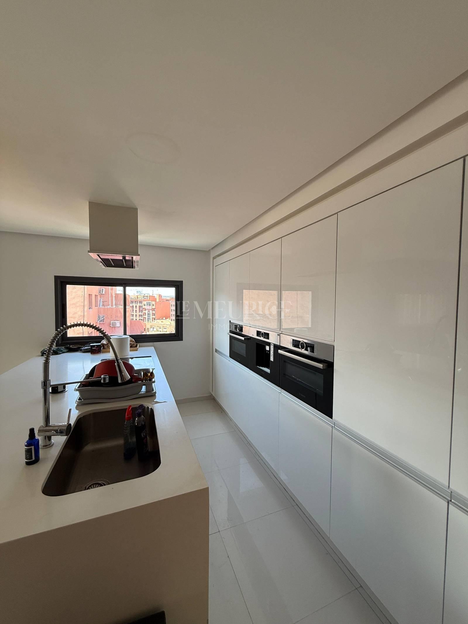 Situé en plein cœur de Guéliz, au 5ème étage d’un immeuble de standing, ce magnifique appartement de 200 m² offre confort, élégance et prestations haut de gamme.
